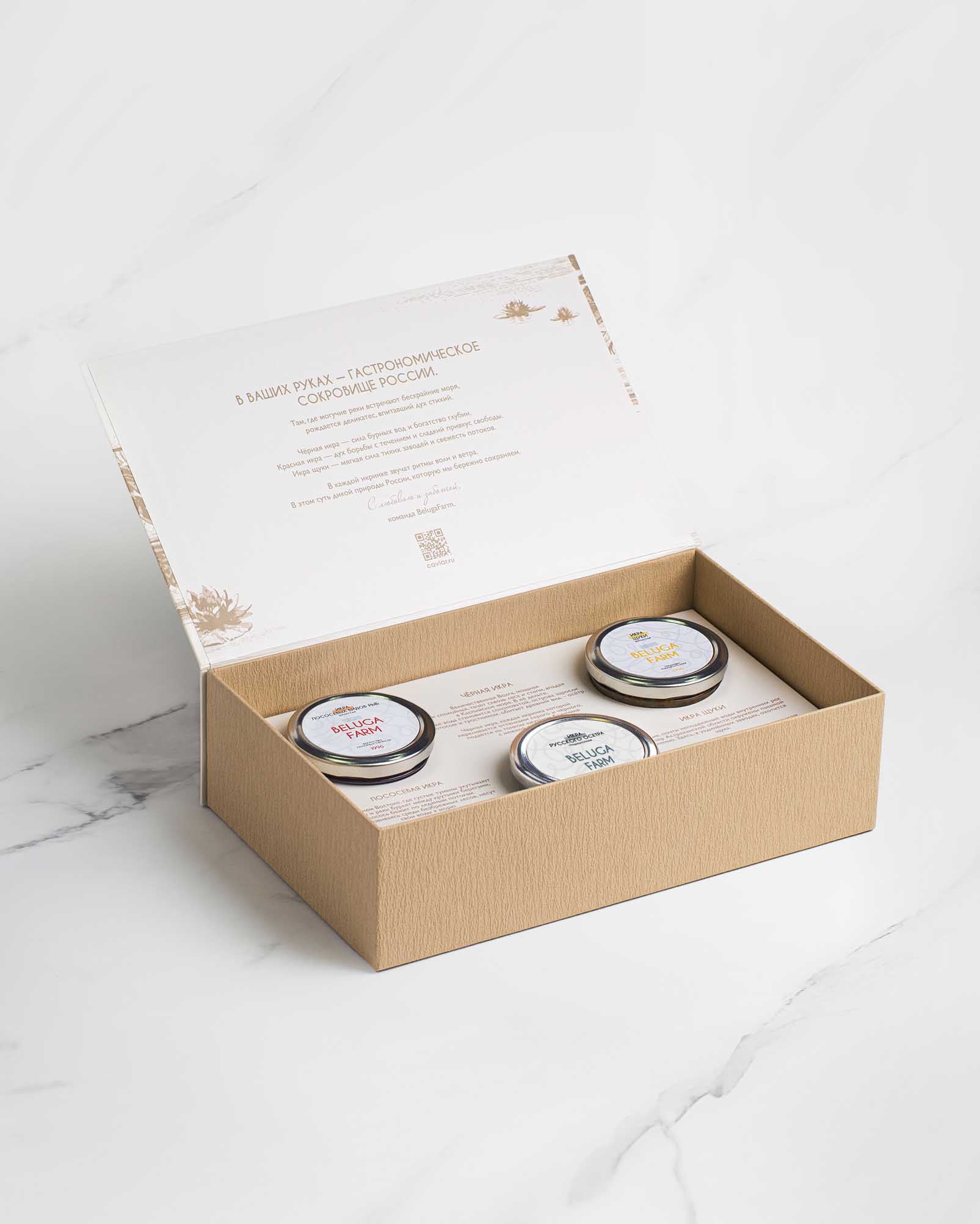 Подарочный набор, объединивший в себе удивительные фантазии природы, – чёрную, красную и щучью икру. Погрузитесь в исключительные вкусы деликатеса и прочувствуйте всю его многогранность.